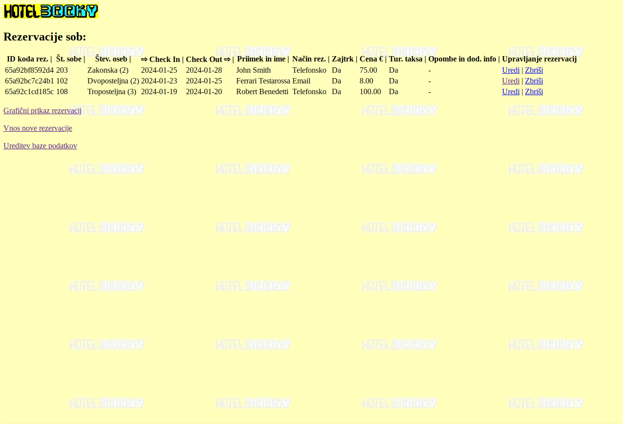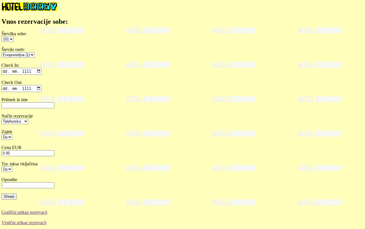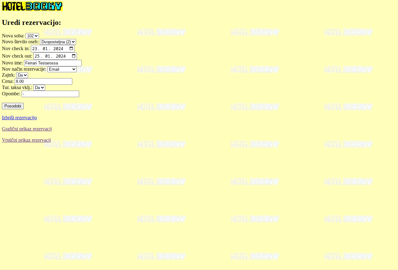 Vnašanje in urejanje hotelskih rezervacij preko spletnega brskalnika