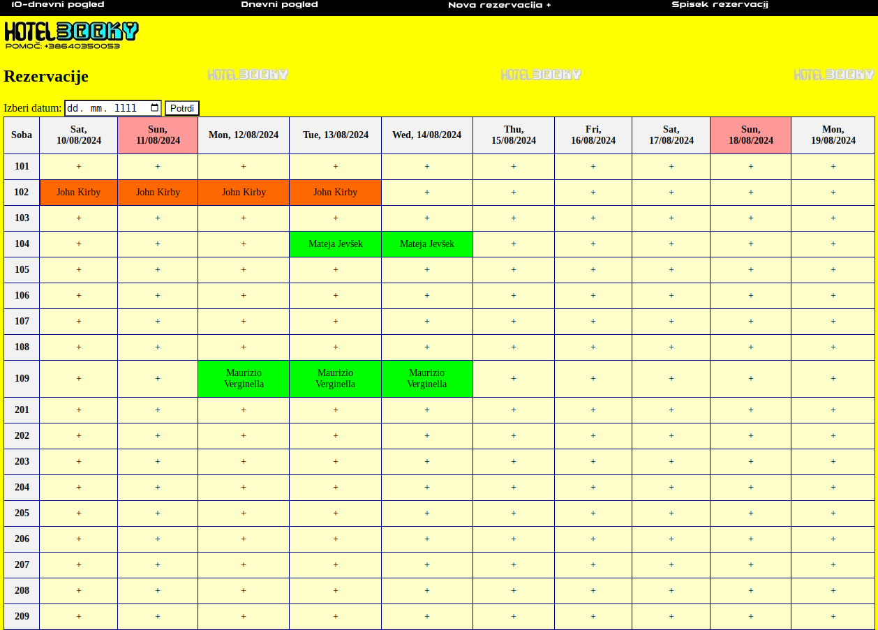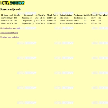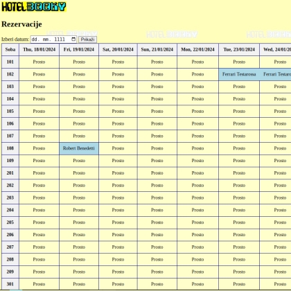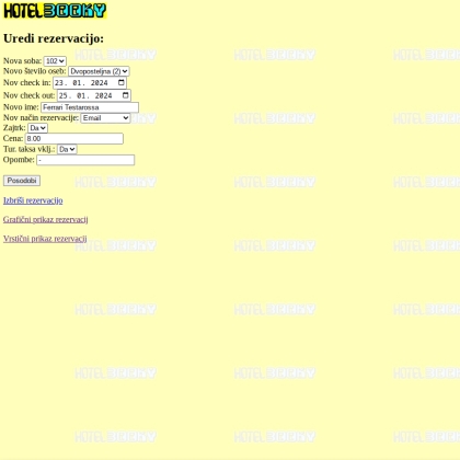 Vnašanje in urejanje hotelskih rezervacij preko spletnega brskalnika